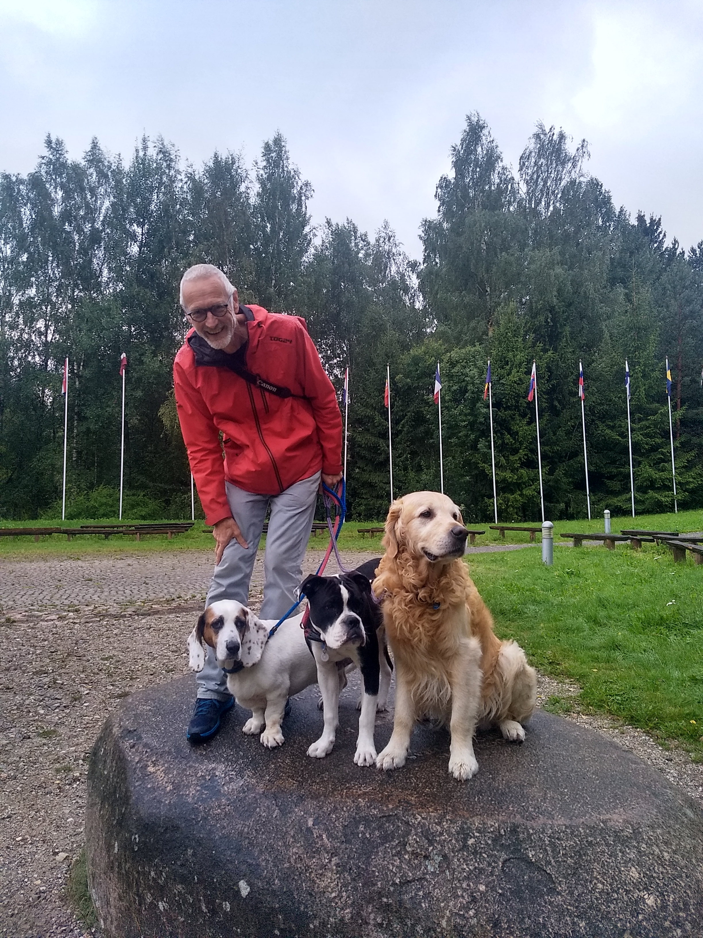 The pups did brave a couple of quick walks but Ernest does’nt like it and so darts back in as soon as he has done his business, Mabel has a bladder of steel so refused two walks and later did the worlds longest wee at the centre of Europe, and Jasper didn’t notice it was pouring down; it makes no difference to him. Mark briefly lured me out with the promise of hot soup at a cafe 50 yards from the van.