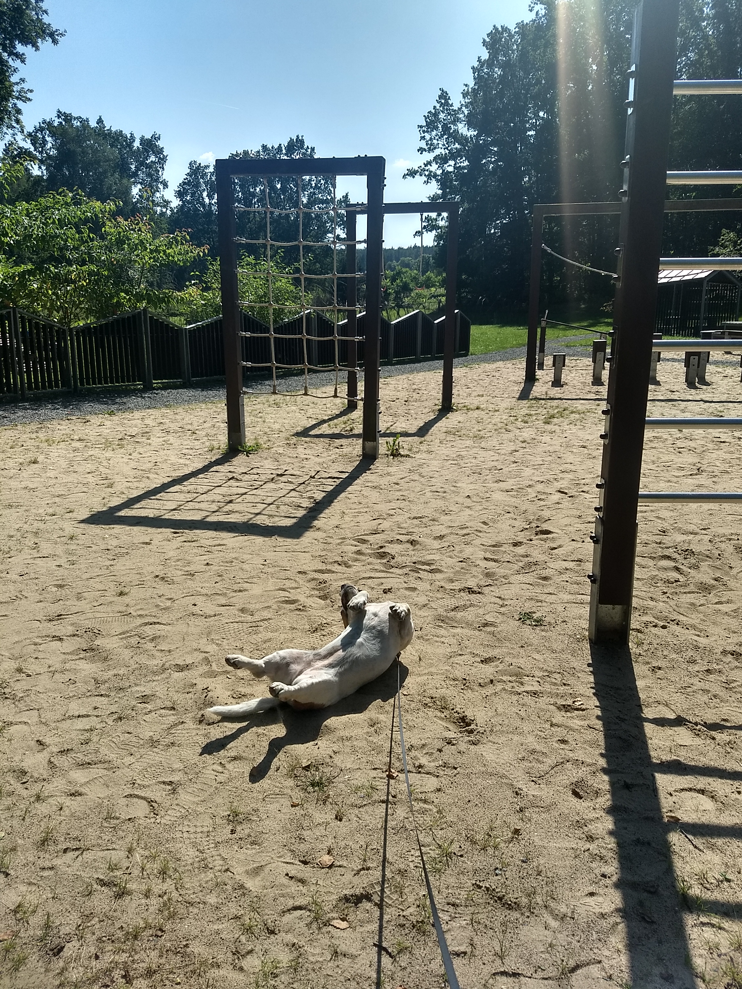 From there it was a drive out to the Forest Arboretum of Warmia i Mazur which had a couple of short trails, boulder collection, various types of bee hive and an exercise area that Mabel and I had a play on. Mabels rolls are coming along nicely and I struggled to do 9 pull-ups, a few sit ups, and I’ve forgotten what you can do on hoops/parallel bars π Here I’m wearing my newly cut shorts as my darn thighs had worn a big hole in my jeans…who likes short shorts π