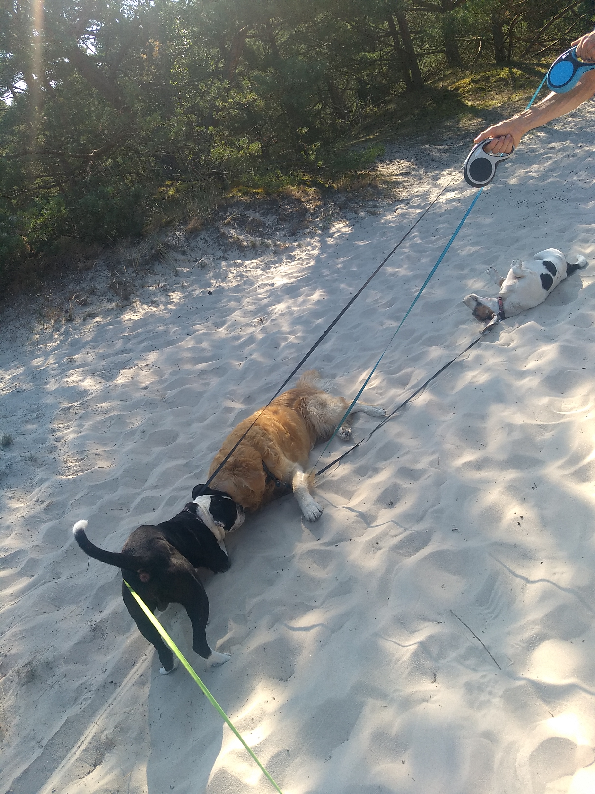 Still we had the perfect beach for perfect beach weather. Parked at Slowinski National Park at 9am there were already reams of people heading to the beach. We opted to walk to the further point through the forest not realising it would take the best part of an hour. It’s possible to hire bikes or get the shuttle bus, but the dogs prefer the gentle walk. We cut a right through the forest and over migrating sanddunes and came out to pristine white sands that were really quiet. Perfect for a toe dip (the sea is still cold) and relax. Best to bring a picnic as no ice cream stalls this far out…I’d only packed dog treats, water and rice cakes 😂
