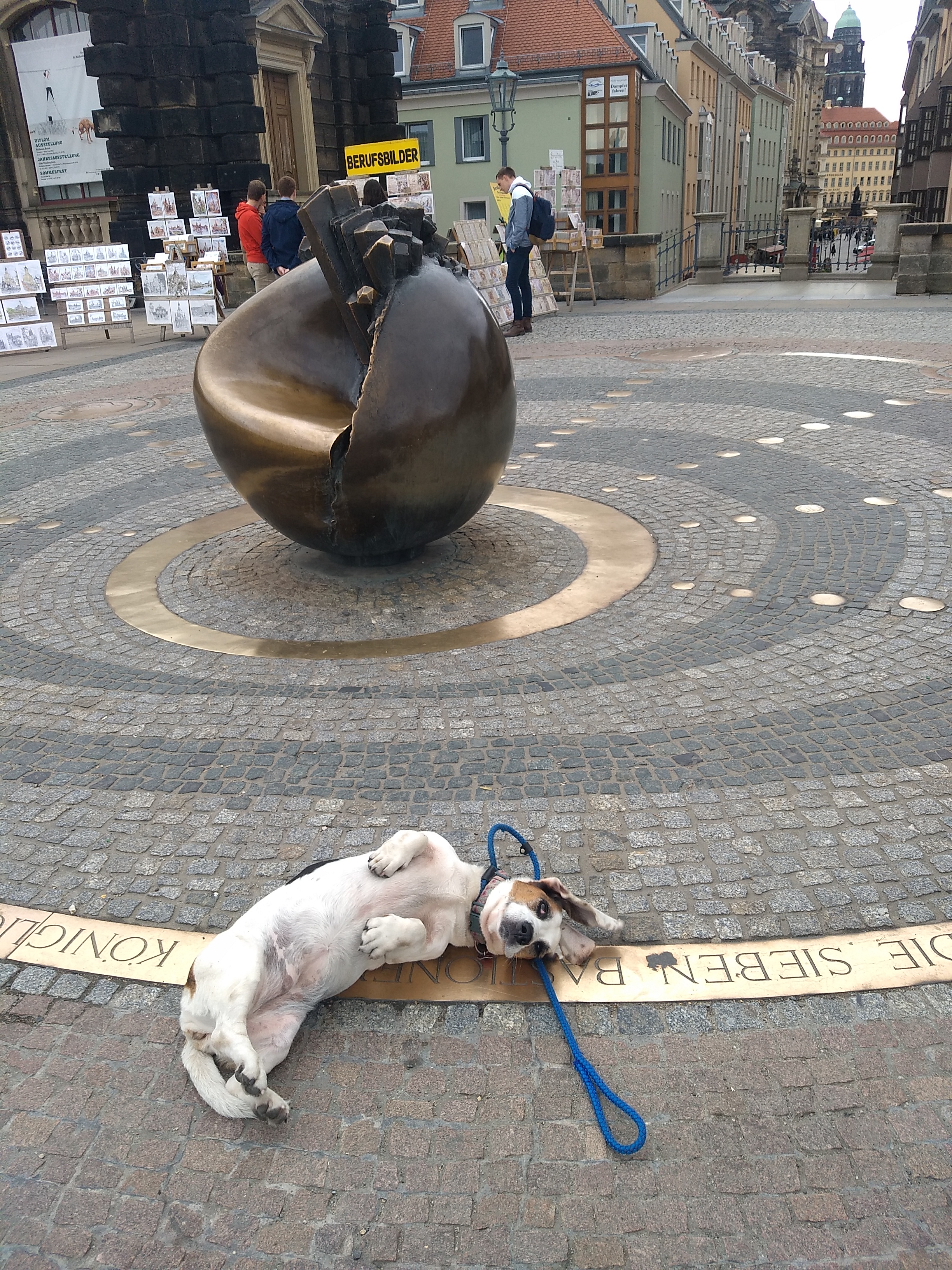 Our pups really are spoilt – what a cultured morning walk pottering around Dresden old town. Mabel and I considered driving on ahead in a flashy ferarri, she had a roll at the planetary sculpture and I spotted a moose head. There is so much to see, you really must remember to look up and in every direction for the extra details. We also heard someone playing the handpan which I’d love to learn if they weren’t so darn expensive 😂