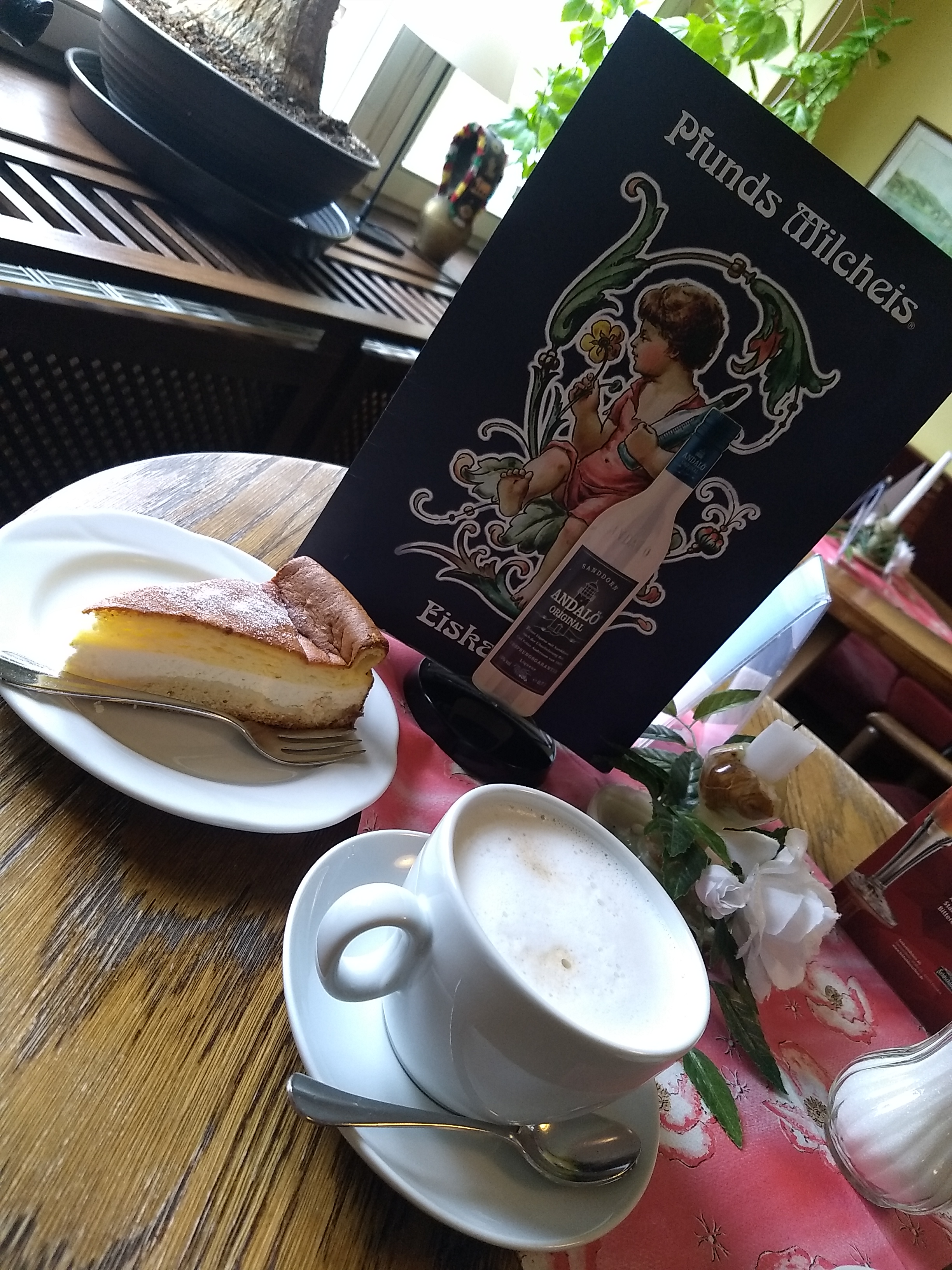 By this point it was gone 12 and I’d not had any breakfast so it was a quick dash to Bio ist Genuss cafe for a slice of vegan apple strudel before the hangry monster appeared. I’d recommend a look at the tiles in Pfunds, but then eating at Bio as it’s much nicer and also serves Eierschecke. (P.s. you aren’t meant to take photos Sshhh)