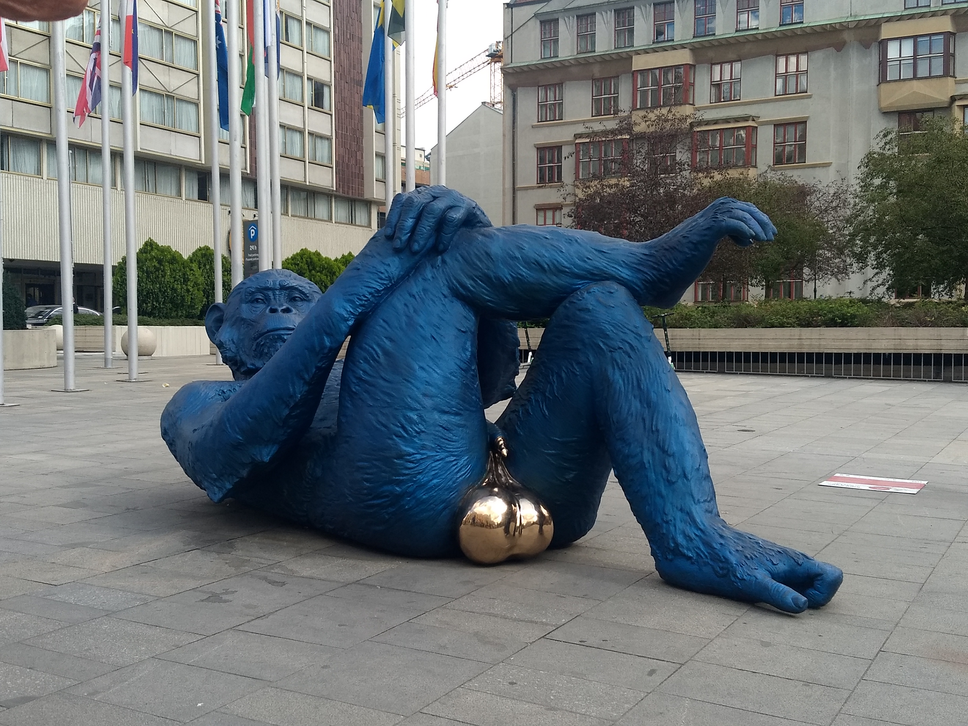 With a long list of things we wanted to see and do, we were up and organised. We decided to walk the pups into the old town, through Stromovka and Letenska parks, then follow a sculpture route I’d planned on my phone. There is a great golum story linked to the old new synagogue (great name!) – the golum is supposedly buried there. And there is a gorrila with golden nuts that drew the largest crowd 😂