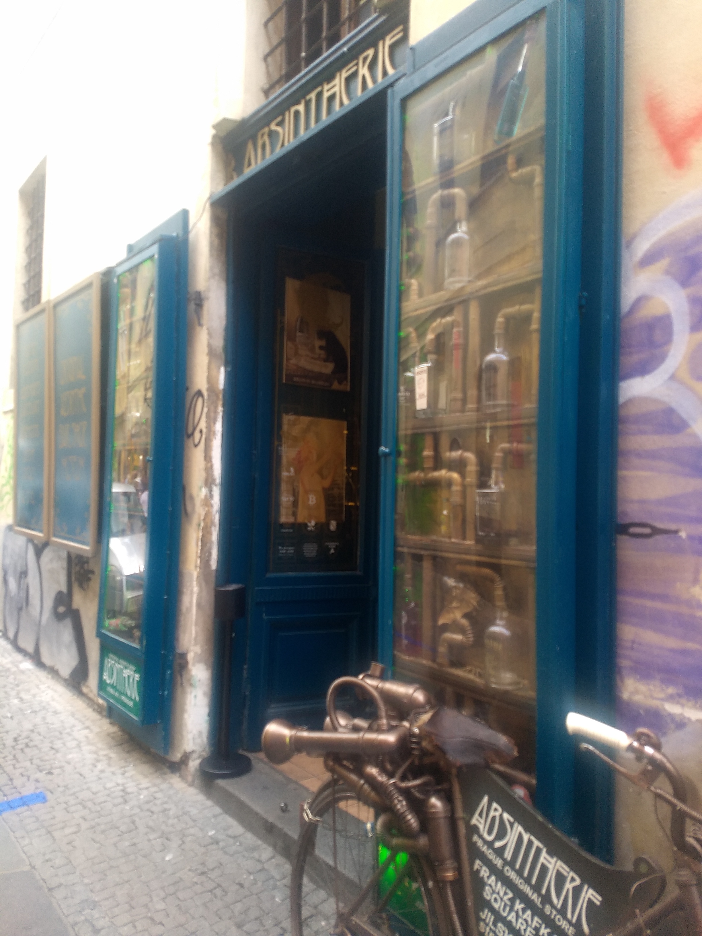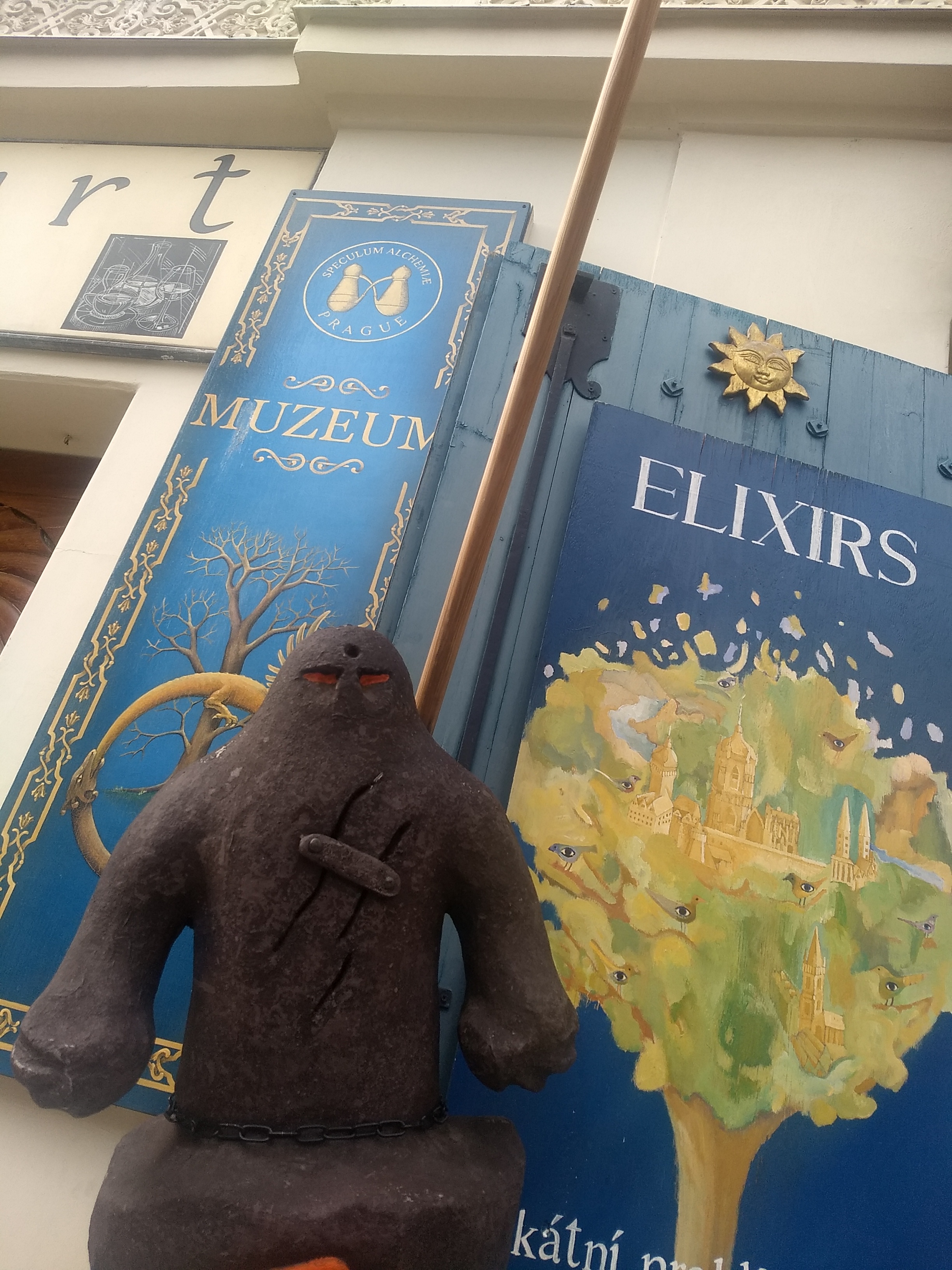 After a marital hiccup, we had lunch and got the tram into town again. Feeding Absinthe to a wife who doesn’t typically drink proved successful, and I felt quite tipsy on half a glass of the foul stuff. I think it added to fun tour at Speculum Alchemy – a quirky short tour in Prague’s second oldest building, with some interesting facts. It’s based in the Jewish quarter as Christians were hostile towards science whereas Jews weren’t. And a translation error means Moses has horns. The place really reminded me of some of Walter Moers drawings, I could easily picture his zamonian creatures living there.