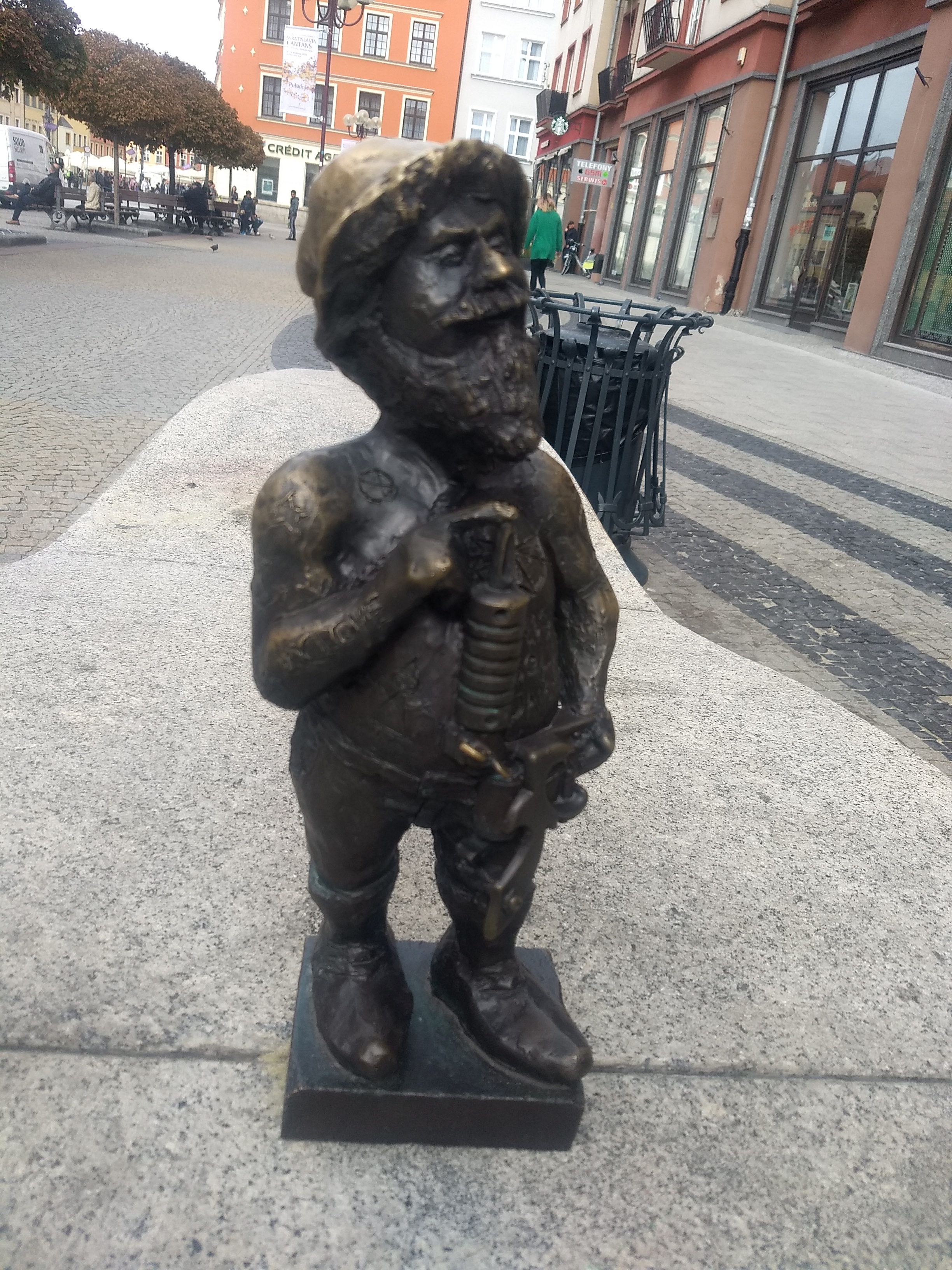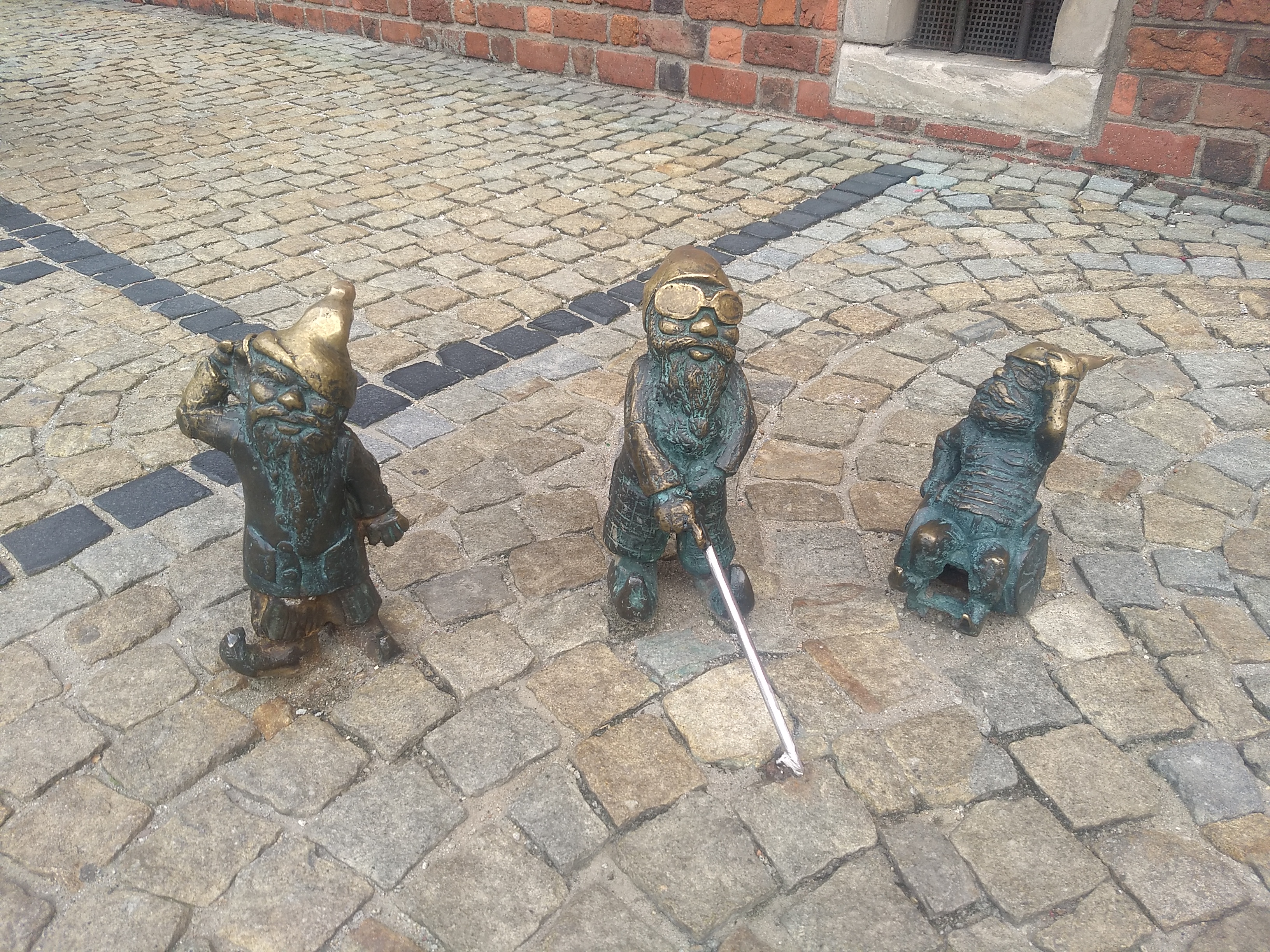 This is actually a genius idea by Wroclaw, as you walk miles and are constantly engaged, scanning the ground, features, buildings for little gnomes. If anything you are so busy scanning the small stuff you forget to look up and take in the big picture or key sights. Mark thought we had missed the cathedral, but I remembered a trio of gnomes was next to it š