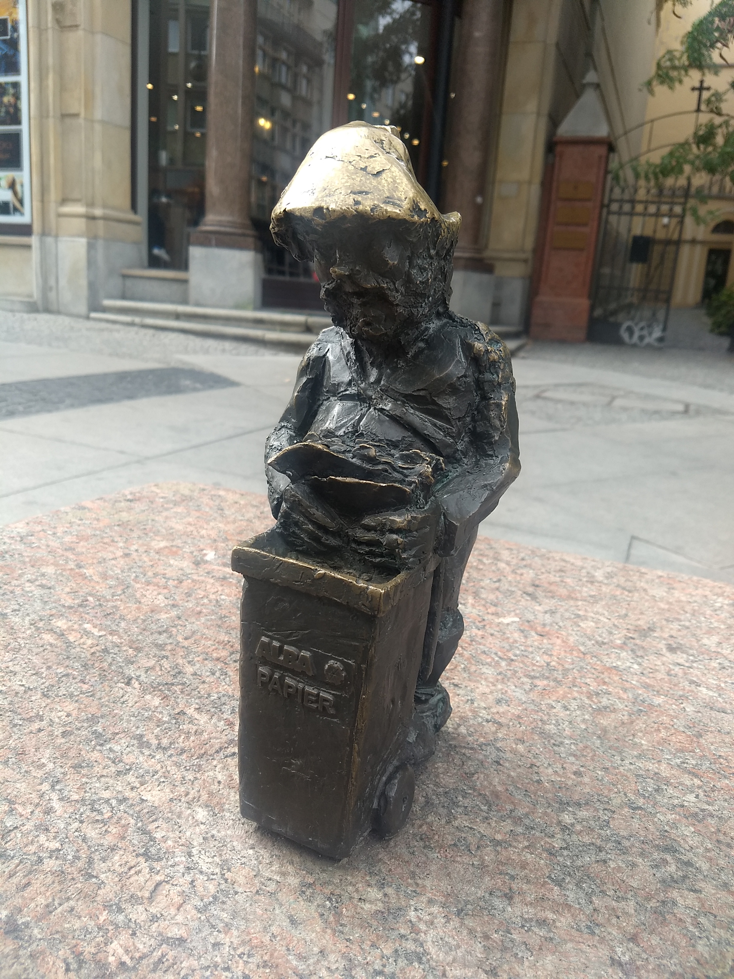Fast forward an hour or two, Mark is bored of gnome hunting (I’m winning), we stop for coffee and cake at a lovely bookshop/vegan cafe called Vegedajnia Nalanda, take in a few more sculptures then head home.