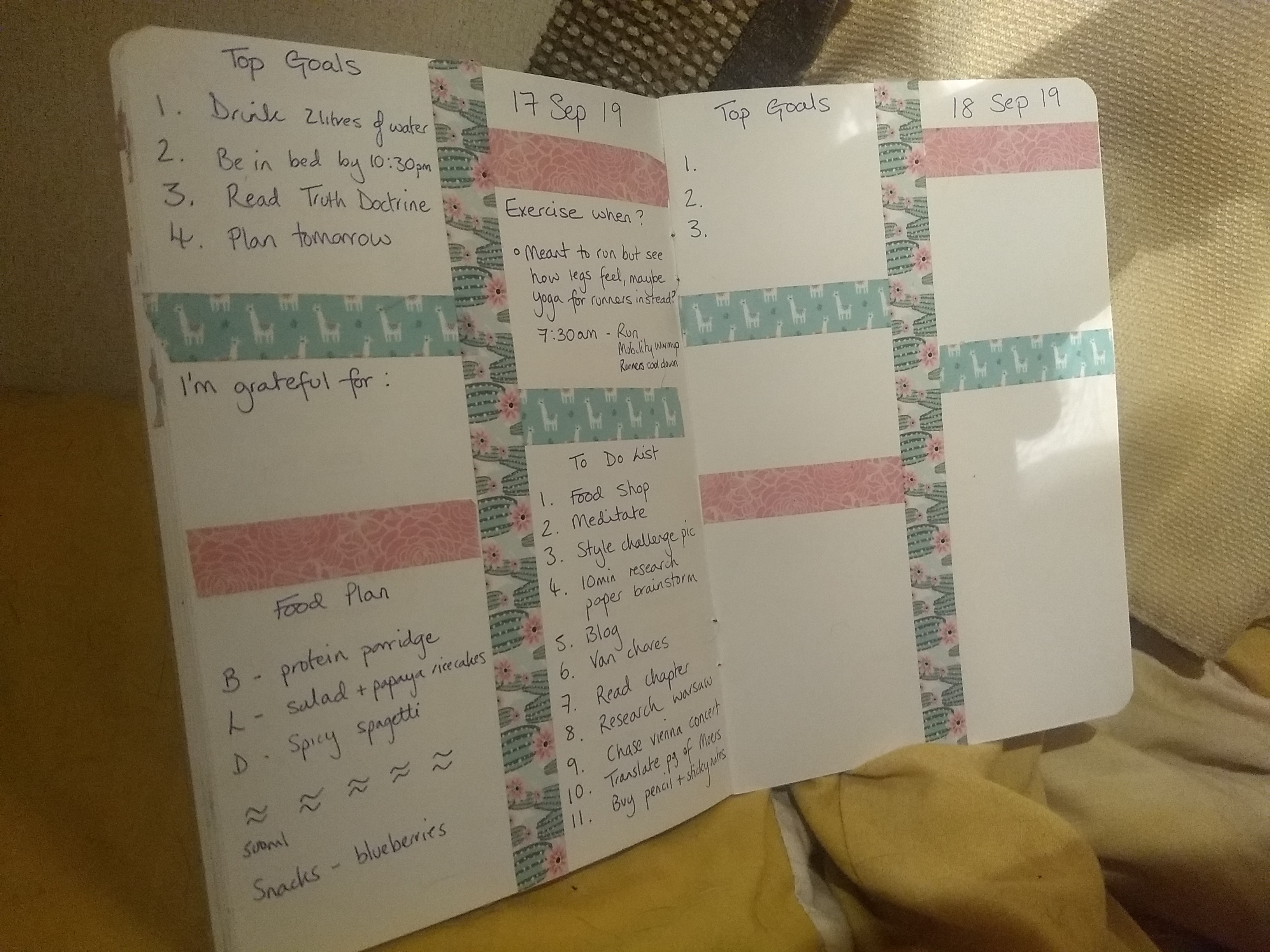 Then for the goal setting. I spent the whole evening, playing with washi tape to make my journal pretty, and watching my nutrition/fitness coach Dean Byers (Primal Tribe) video on the holistic 10, and thinking up goals around each of them.