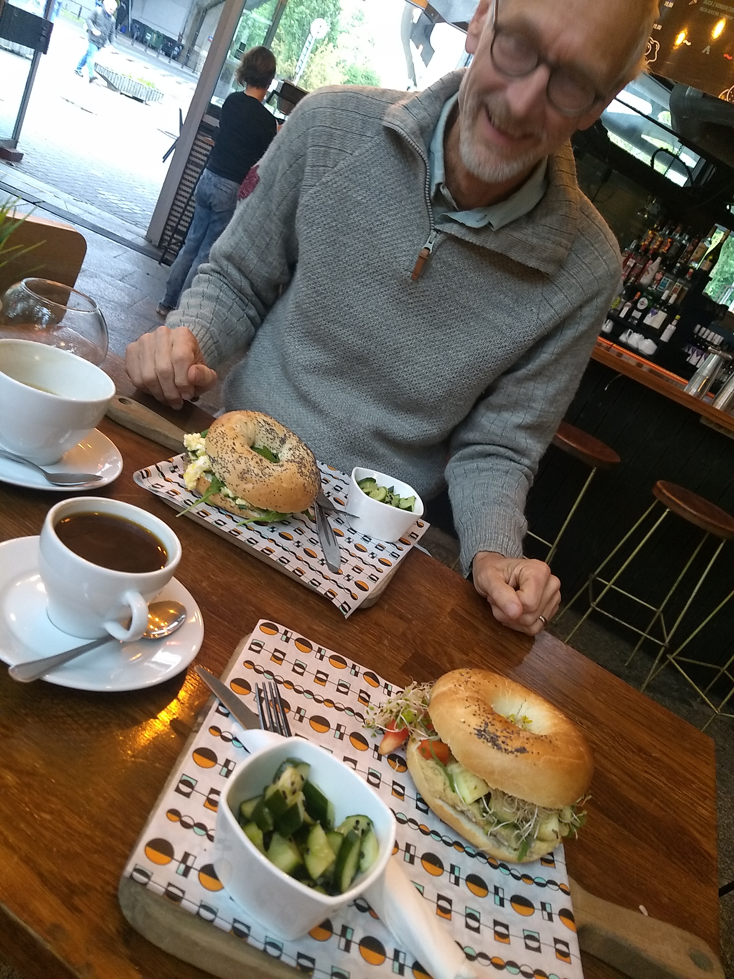 It was then back to the van for a rest before catching the tram into the Old Town. We somehow walked in completely the wrong direction but found a great hidden bar area (Pawilony Nowy Åšwiat – best to go ), at night) with a cute vintage shop where I spent far too long but found great treasure – the best of which were £30 leather boots! My style challenge is certainly helping me pick things. Mark preferred the simpler days where getting dressed took me two minutes and didn’t involve him hanging around shops like a lost puppy. It was time to reward him with more food. A breakfast bagel at the funky converted train station ticket office Warszawa PowiÅ›le did the trick.