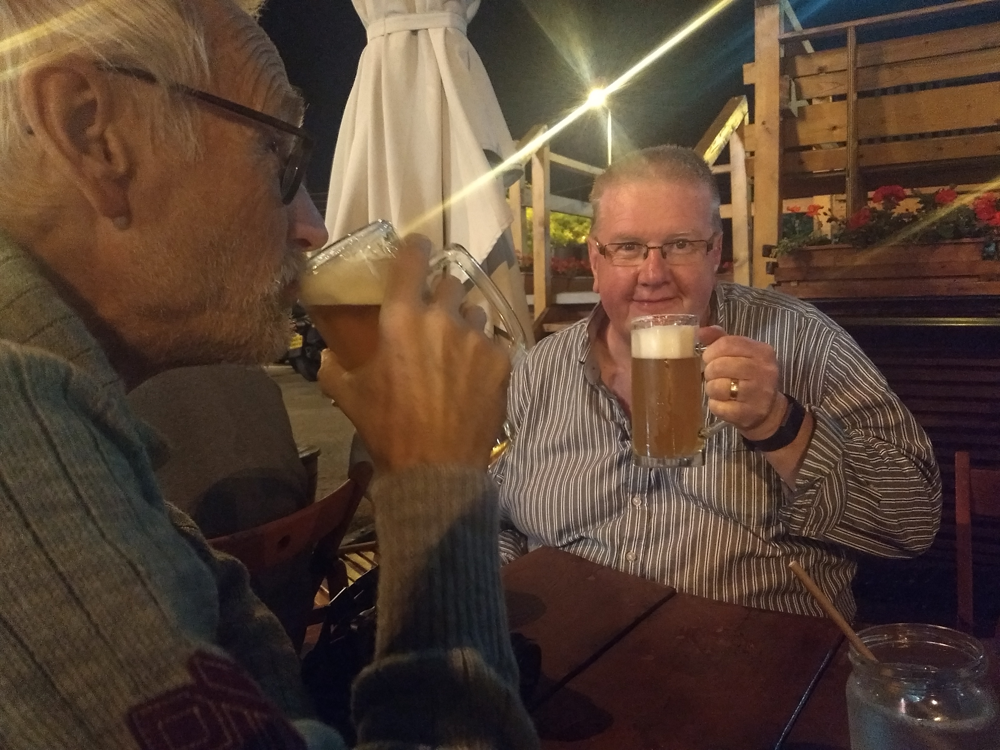 I filled him up with lentil dahl and then we visited the UFO Tower which has amazing views over the city and funky urinals (photo courtesy of Mark). Rather than have a cocktail there we ventured into the old town to an unusual beer cellar pub called Steinplatz in the middle of a traffic island. Sadly neither dad nor Mark were impressed with the beer. I need to find better alternatives…any recommendations?