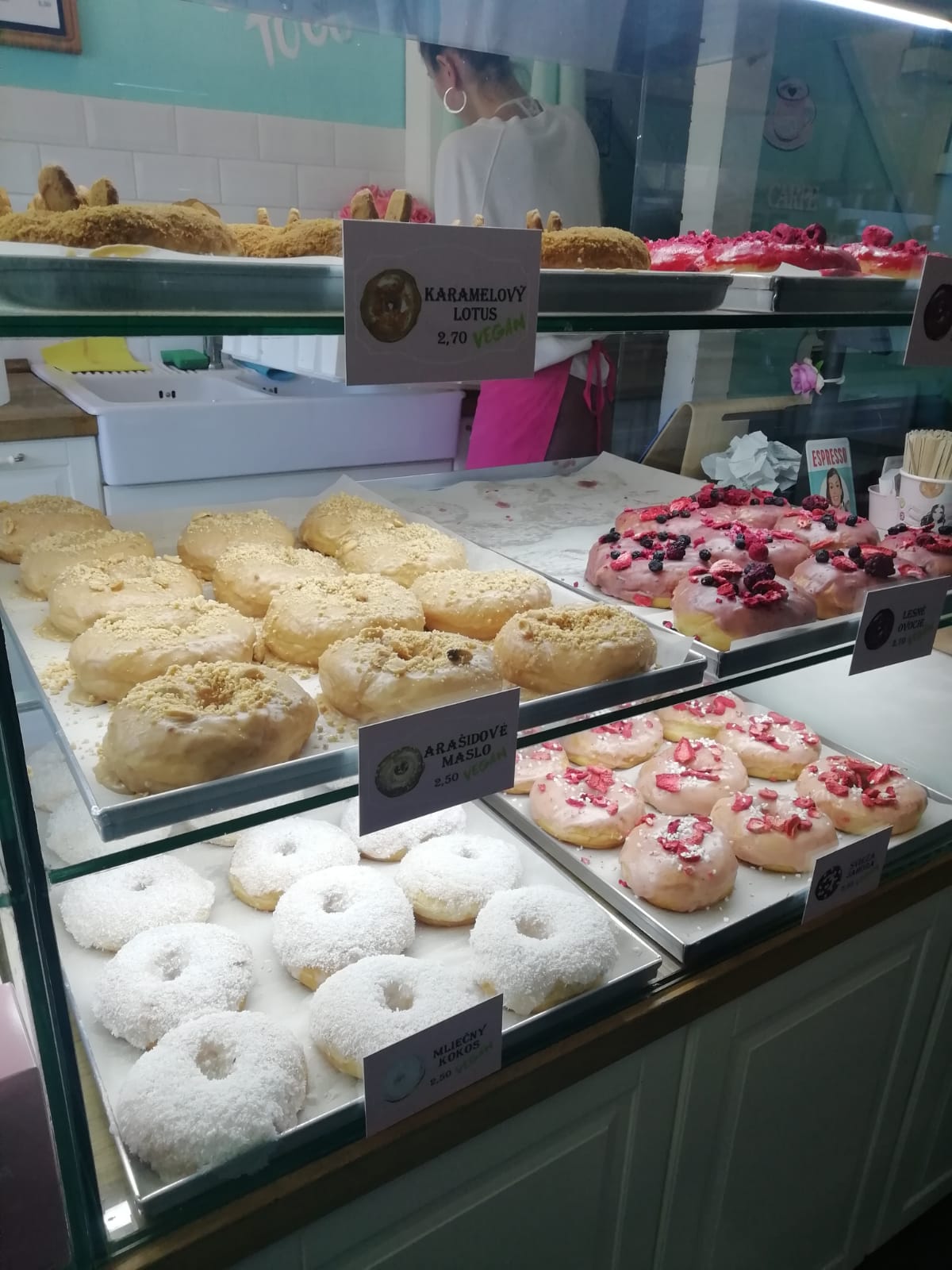 The reason behind most of our walking is typically coffee related and so the first cafe was Sweet Beans Coffee Roastery, which had very nice coffee, modern decor, good atmosphere and nice cake. But there was no vegan option for me so we ‘had’ to go to La Donuteria which had a delicious selection of flavoured vegan ring doughnuts…though fussy me has now decided I prefer filled π.