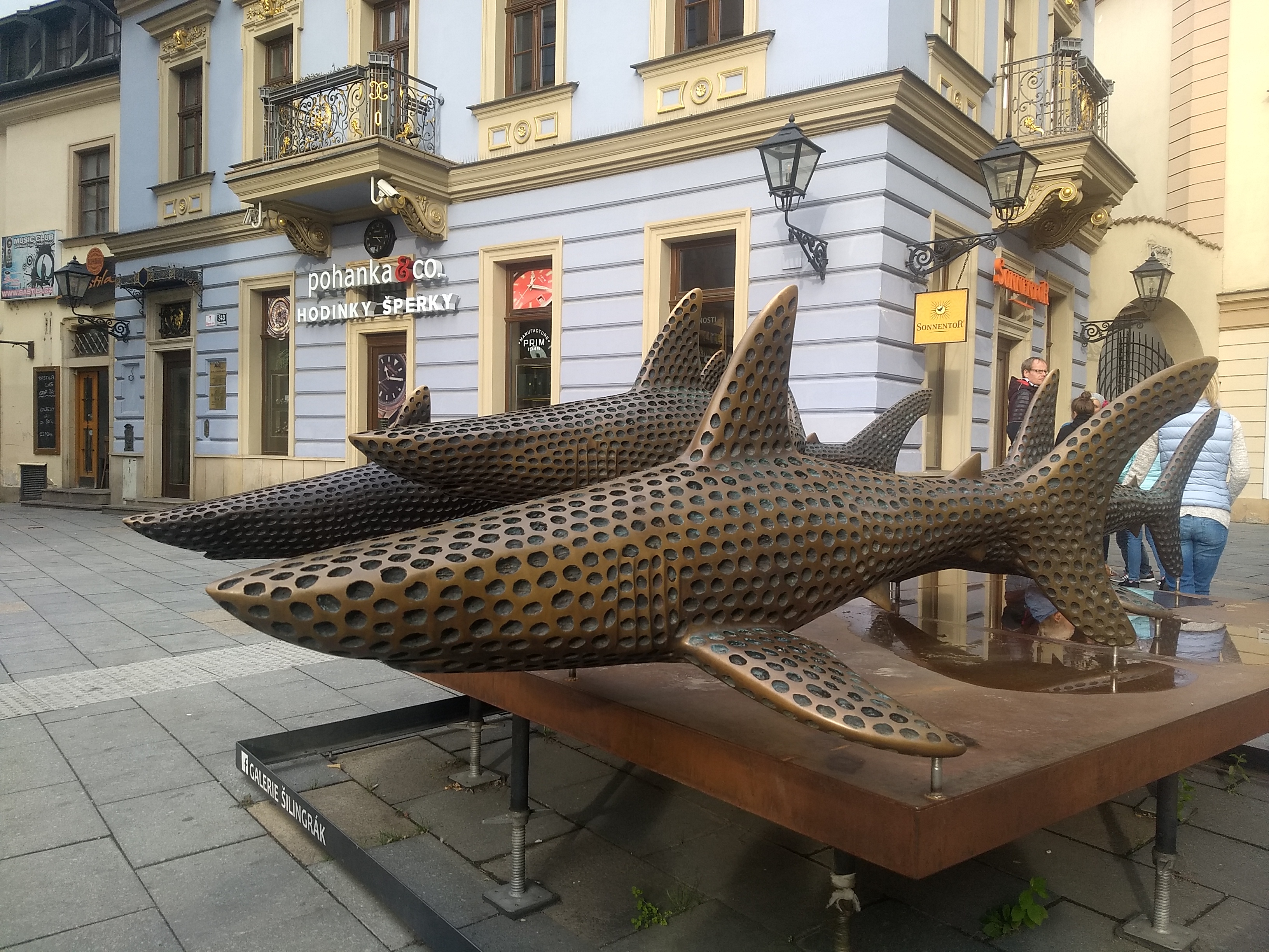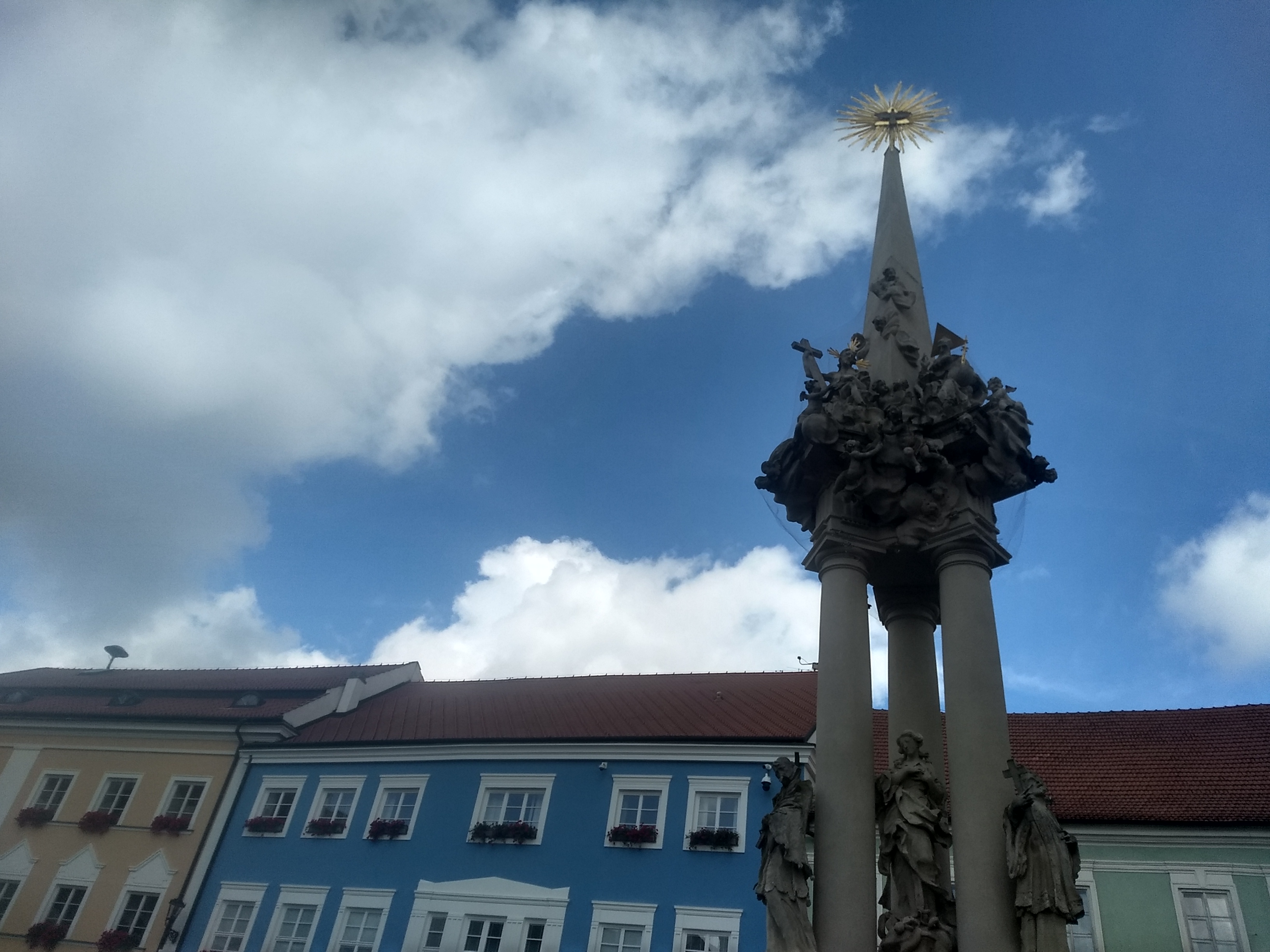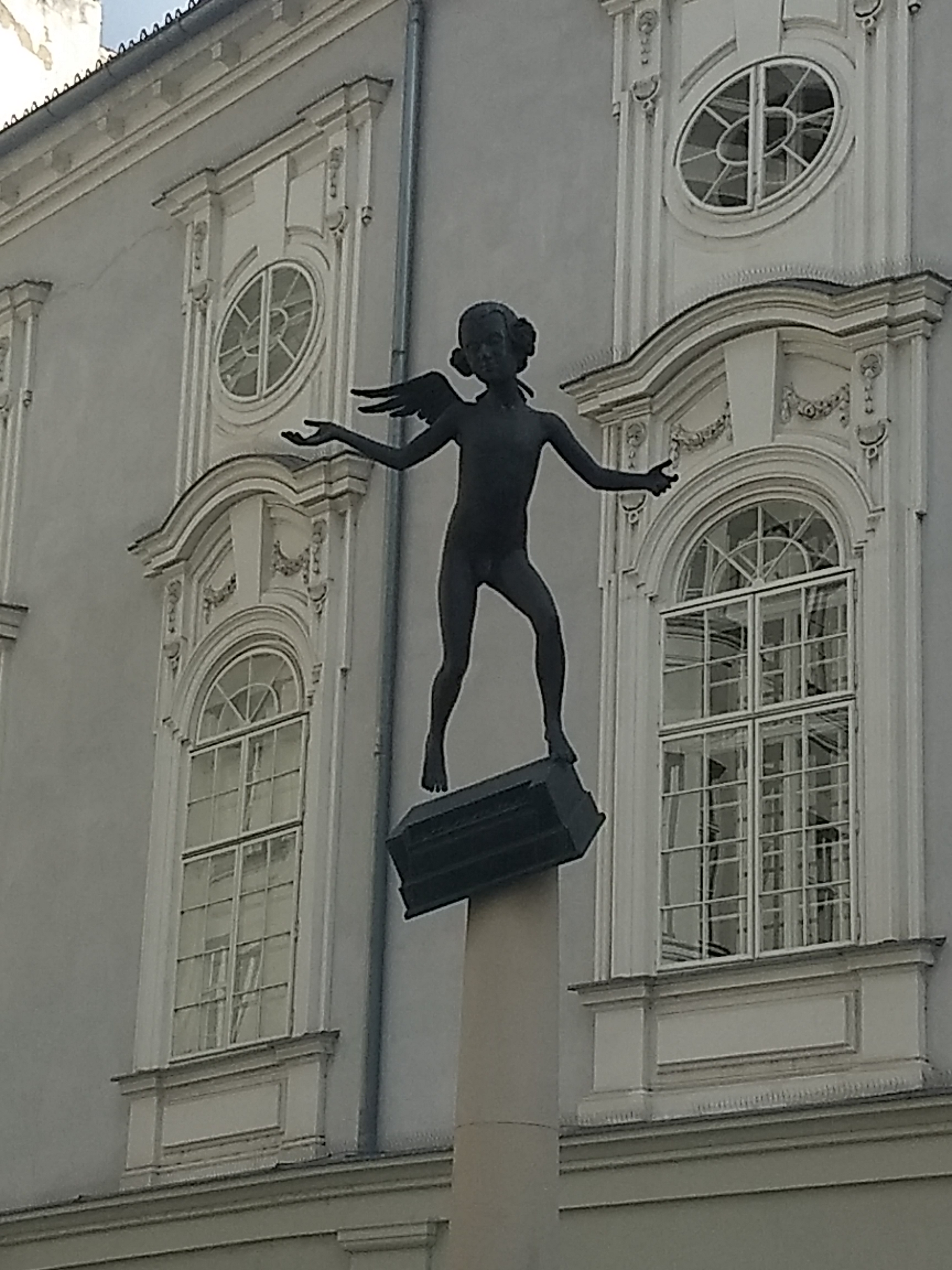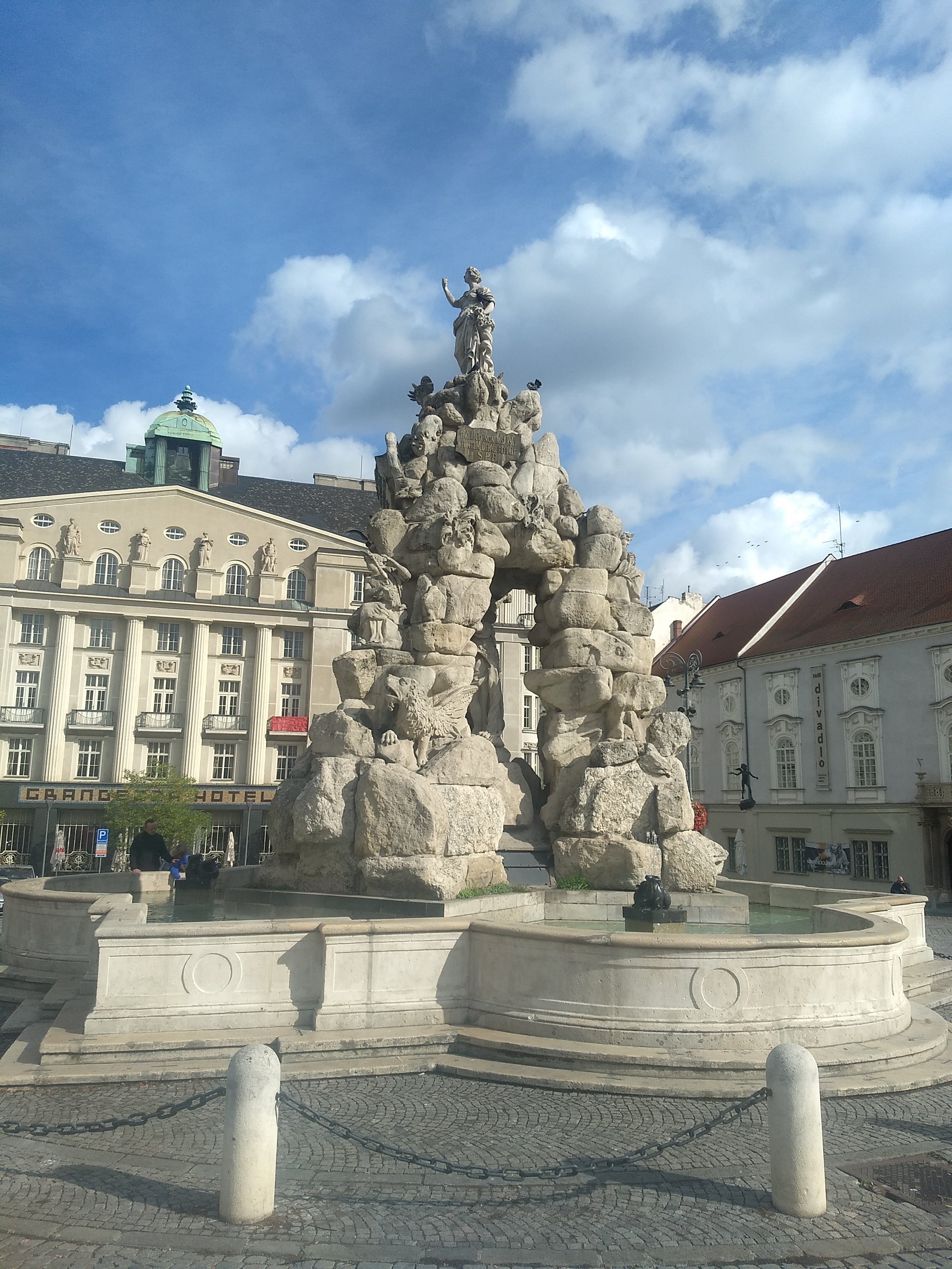 Brno is Czechs second largest city but the main attractions are along one central strip so it’s easy to navigate. As usual there are the quirkier ones – a young nude Mozart sculpture with a single wing, the Brno dragon (that’s actually a crocodile) , a funky astronomical clock that looks a bit like a giant salt mill (N.B. at 11am it drops a marble for any lucky passerby to catch), a very long legged horse – Equestrian Statue of Margrave Jobst of Luxembourg, and a double headed child pulling a moonie on the side of St James Church.