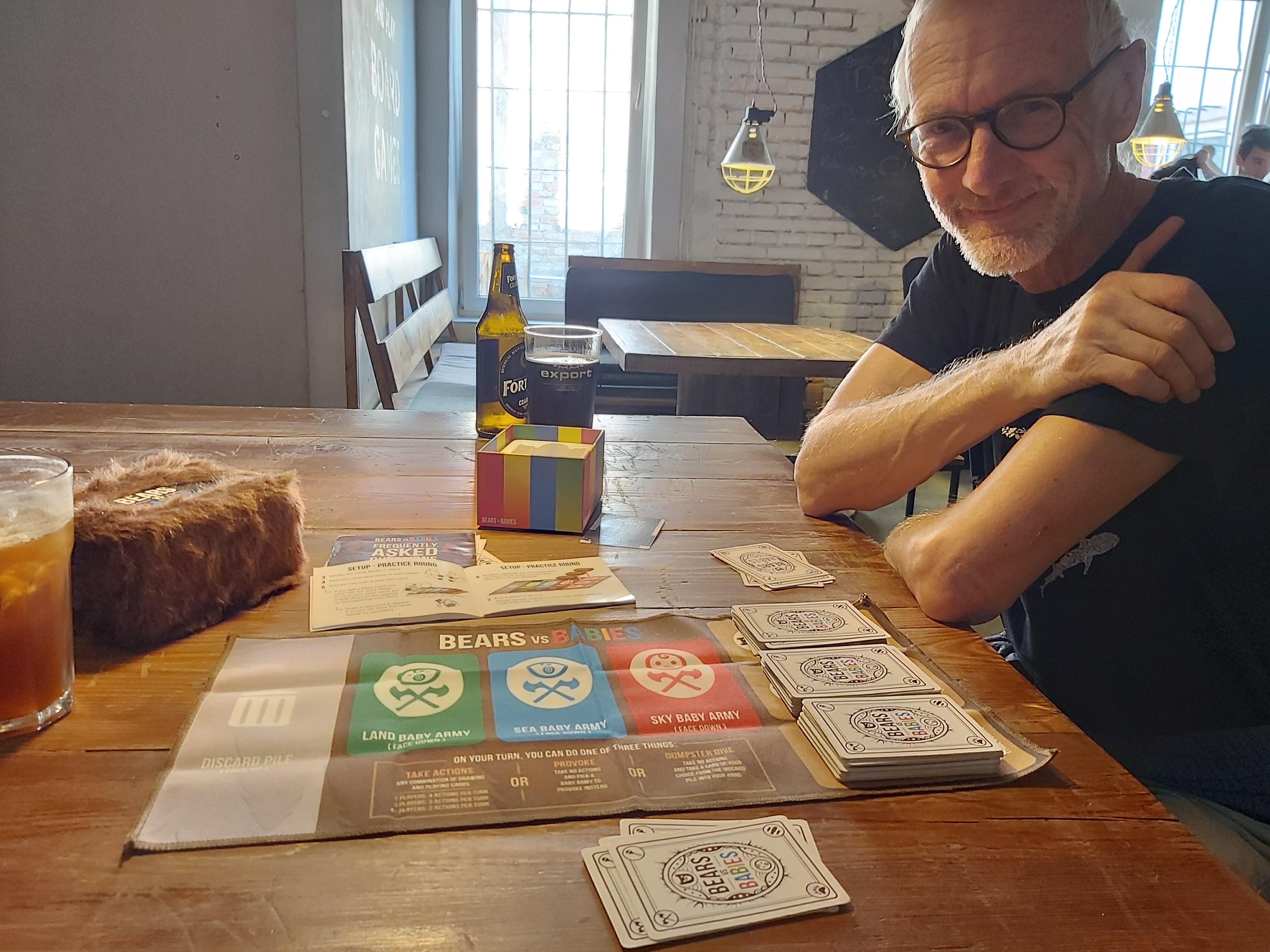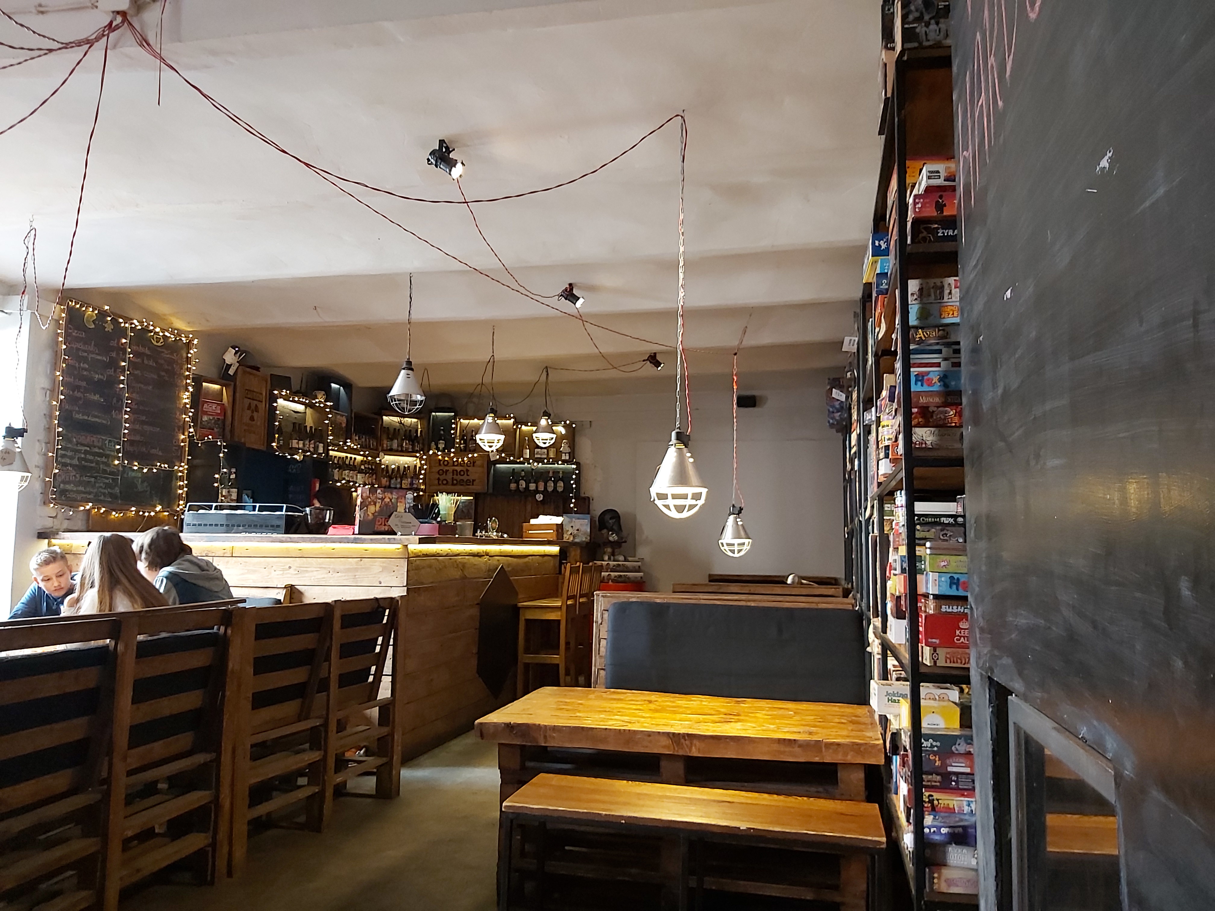 Hex is the most amazing ridiculously hidden little gem. We passed the black door three times, and the only clue was the word Hex scribbled on a flat door buzzer next to all the other flat names. I’m so glad we found it though as it’s got a great bar and hundreds of board games, including some English copies. It was a lovely rest stop – the dogs had water, Mark had a beer, I had my first iced tonic expresso and we played the weird but wonderful Bears vs Babies.