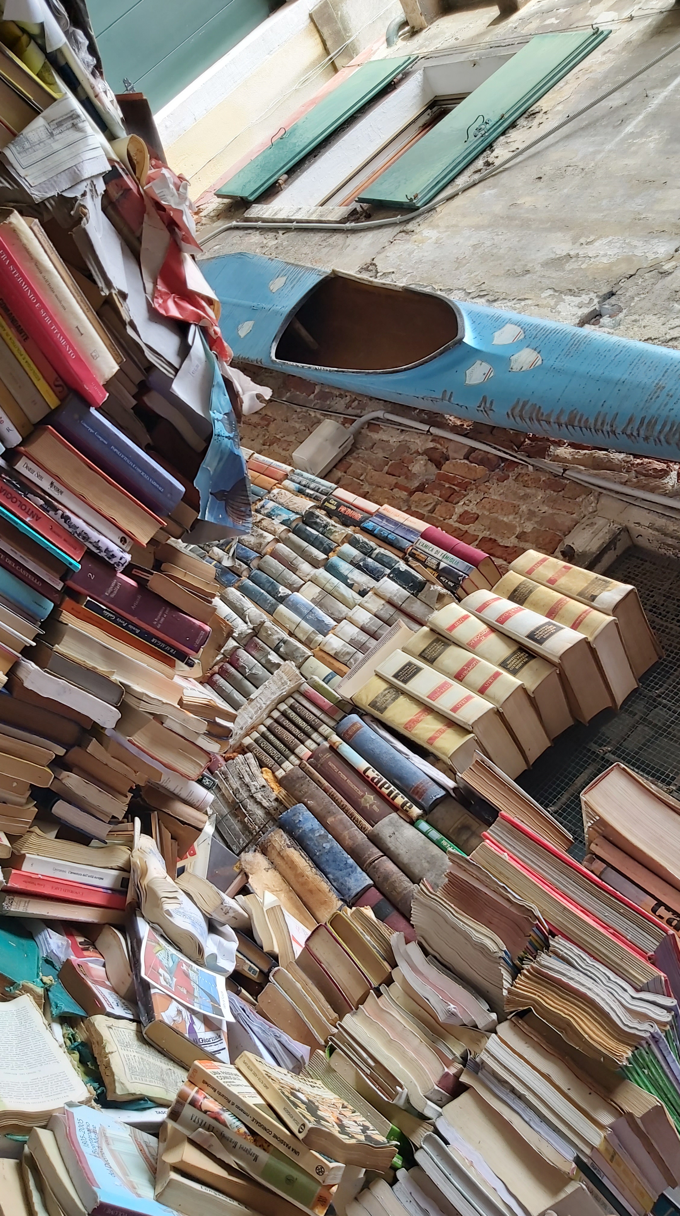 One ‘must do’ for me was the famous Libreria Acqua Alta, which keeps its books in bath tubs and a gondala and has lots of cats who take refuge from the tides. Sadly these higher than usual floods had damaged some of their stock, so they were trying to salvage what they could, and offering soggy books free to dry homes. I rescued a few postcards so if they dry out ok you could receive a warped postcard.