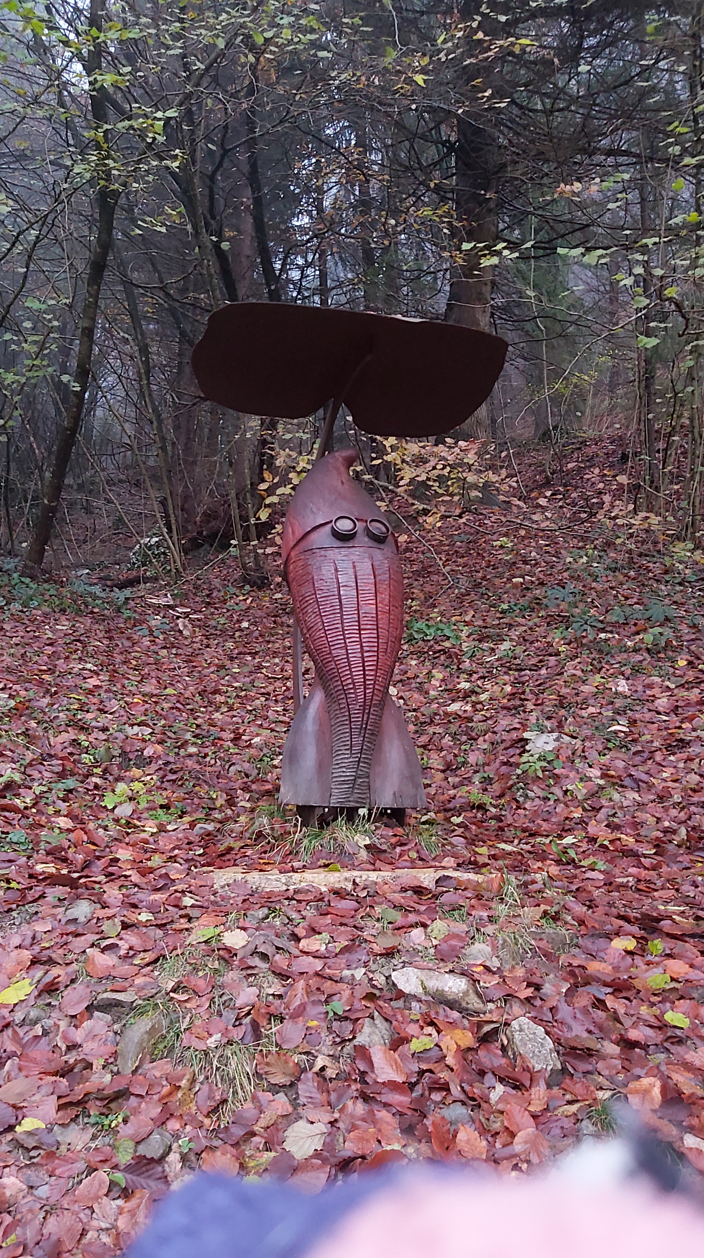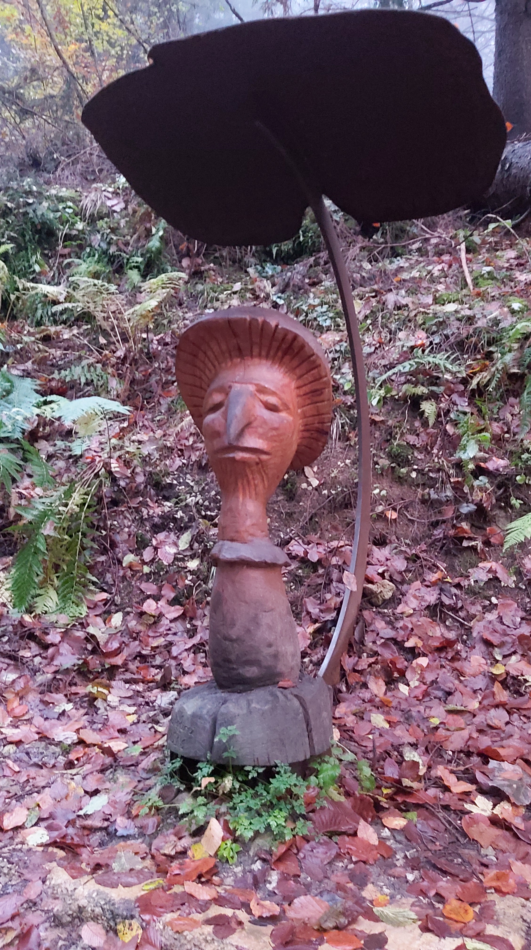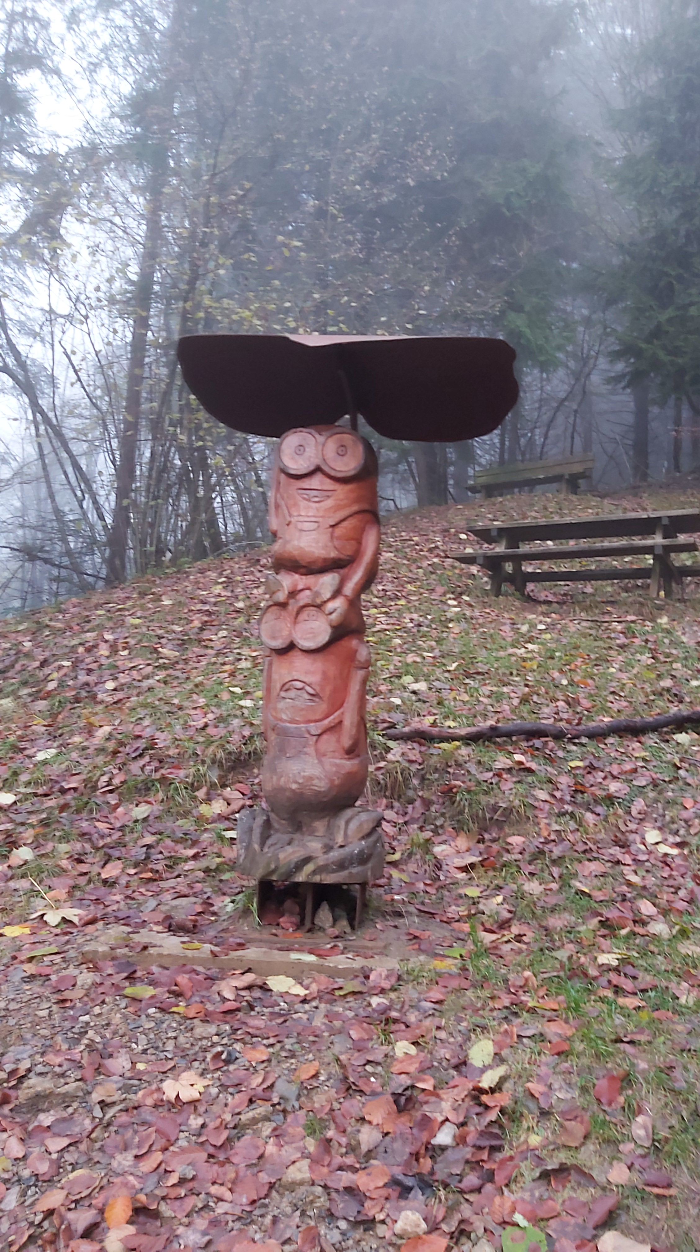 This steep trail along a cobbled pathway through the trees was dotted with various wooden sculptures and the odd farm house. We went as far as we could in the fading light, conscious that the way down was going to be rather treacherous on the slippy stones. Ernest loved it as he met donkeys and could hear the bell collars on the sheep.