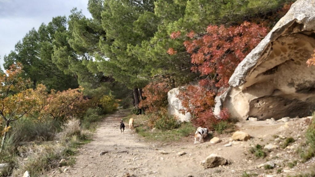 To give both puppies (Frodo the red lab and Ernest are both around 1) a chance to meet and burn off energy, we all did the scenic loop walk around the village. There was a bit of argy-bargy but nothing serious, they soon split back into their own two packs. Jasper as always was in his own world wandering on ahead. Mabel was fine as long as nobody picked on Ernest, and poor Elsa the smallest of the group told the boisterous pups to bugger off and play rough away elsewhere.