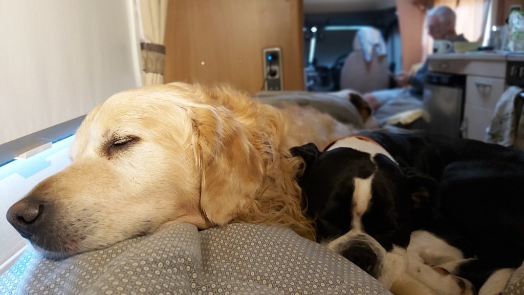 In pursuit of more art, our morning walk was to the Art Park behind the cathedral. There were some great examples but the best part for us were the many dogs running free. Our three joined in and Ernest had the best time running manic with an 8 month old puppy.